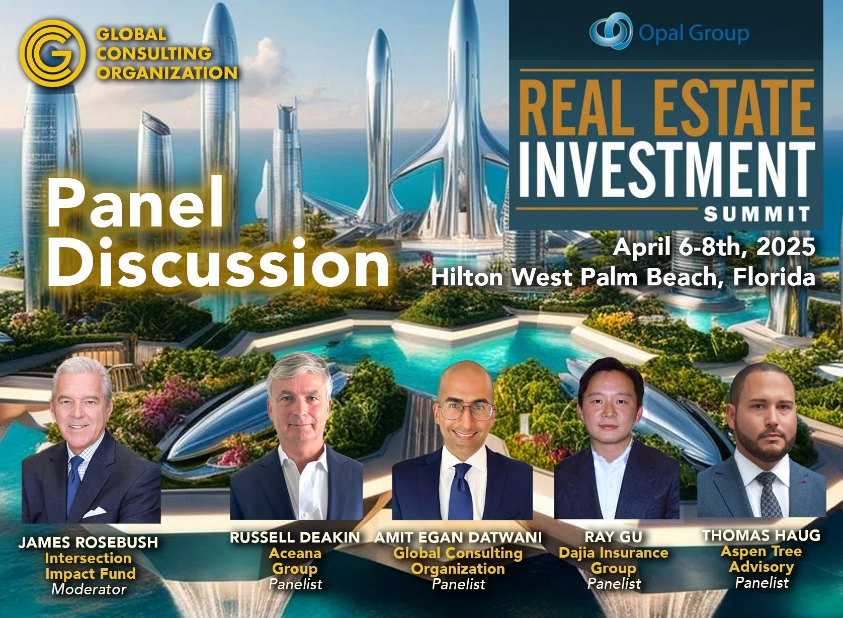 The GCO MOVEMENT to launch NEXT-GENERATION Real Estate took center stage at the Opal Group REAL ESTATE INVESTMENT SUMMIT on Monday, April 7th, 2025, at The Hilton in West Palm Beach, with a featured appearance on the Hospitality-Focused Panel: "The FUTURE of Hotels and Hospitality Investments in a Growing and Dynamic Travel Market.”